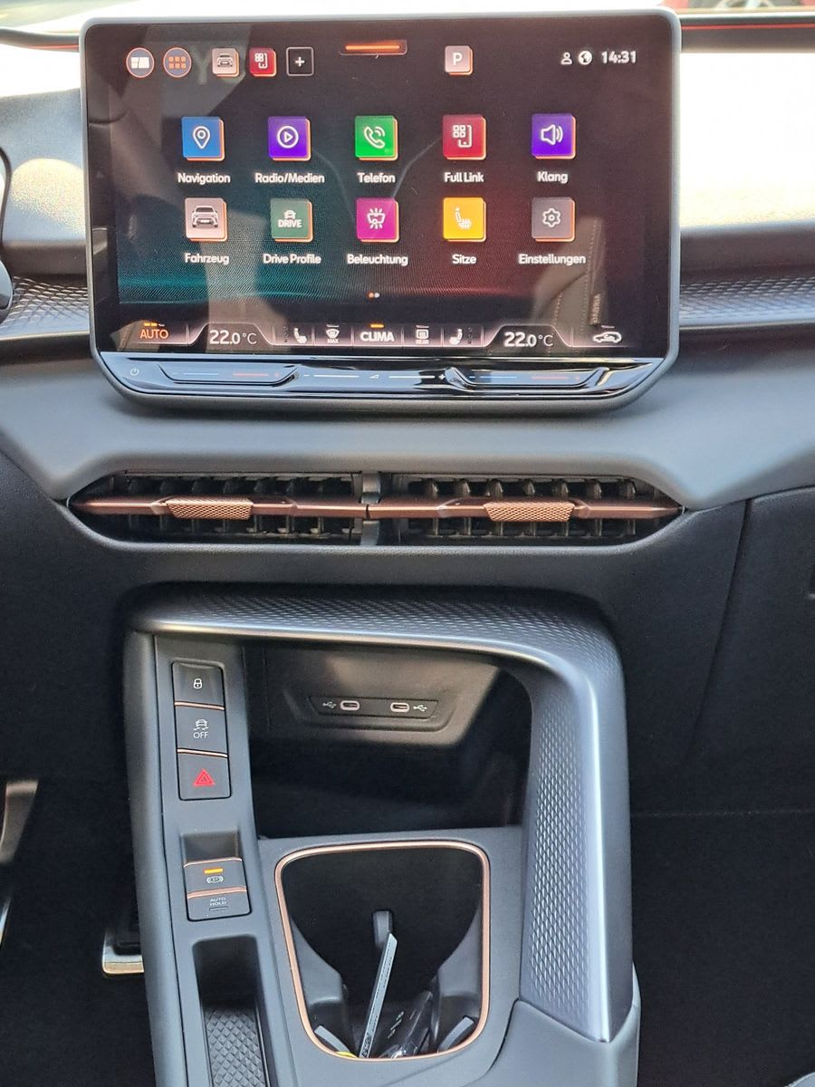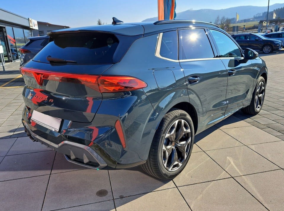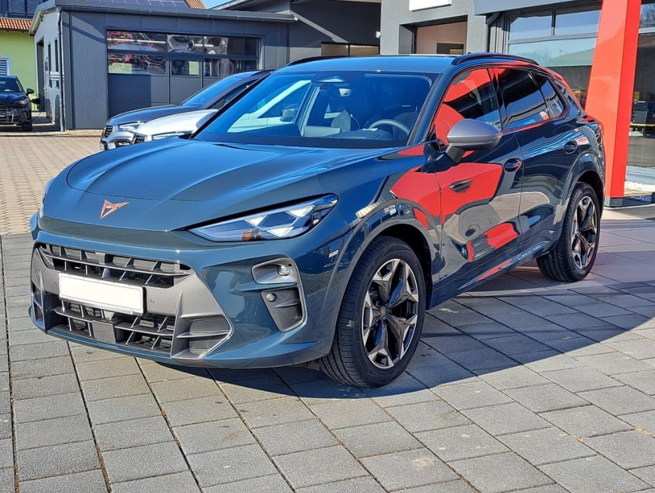 Cupra Terramar 1.5 eTSI to nowoczesny SUV z silnikiem benzynowym o mocy 150 KM, zaprojektowany z myślą o komforcie i codziennej funkcjonalności. Model wyróżnia się m.in. systemem nagłośnienia, 18-calowymi felgami aluminiowymi oraz nastrojowym oświetleniem ambientowym wnętrza, które wspólnie tworzą przyjemne i komfortowe warunki podróżowania zarówno na krótszych, jak i dłuższych trasach.